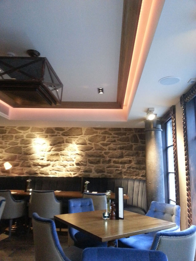 Some of the rooms had several separate covings but the client wanted them to be controlled off of the same controller. This single-zone design was used in the bar, restaurant, cinema room and the library.