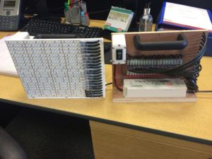 InStyle cut 40 lengths of 20-watt white LED tape to Ed’s specifications – each 20cm long – and soldered a 25cm starter-lead to every one. We also supplied two 24v power supplies, which the LED strips were to be wired to in parallel.