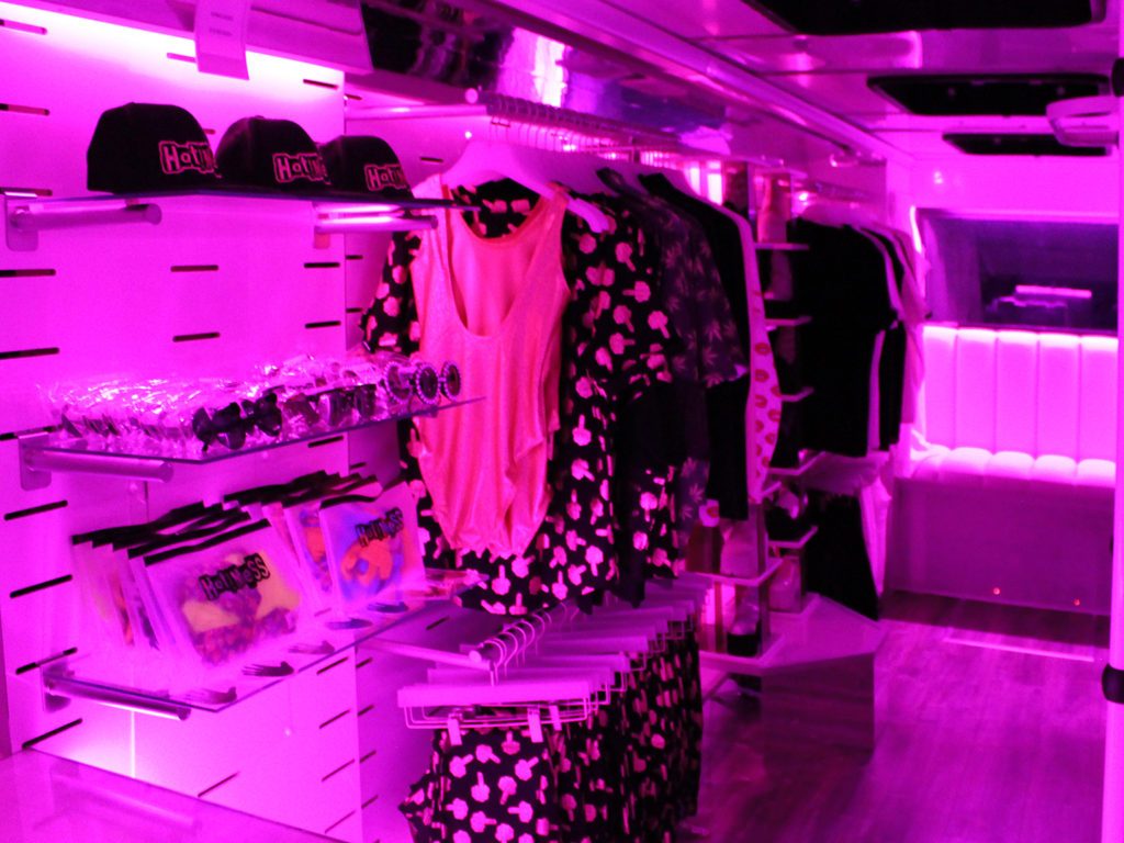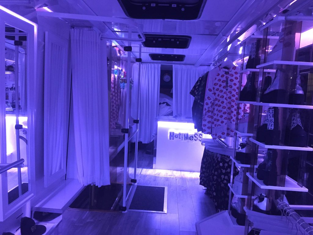 The effect is striking, offering complete changes in colour and mood at the touch of a button . Light from the LEDs completely washes the inside of the tour bus, and enables the girls of Hot!MeSS to select any shade of any colour. The easy-to-use LED remote controller even lets them run colour scrolls, adjust brightness and mix white light. The remote doesn’t need to be ‘line of site’ with the LED receiver, so the receiver and transformer are tucked together in a cupboard, out of sight.