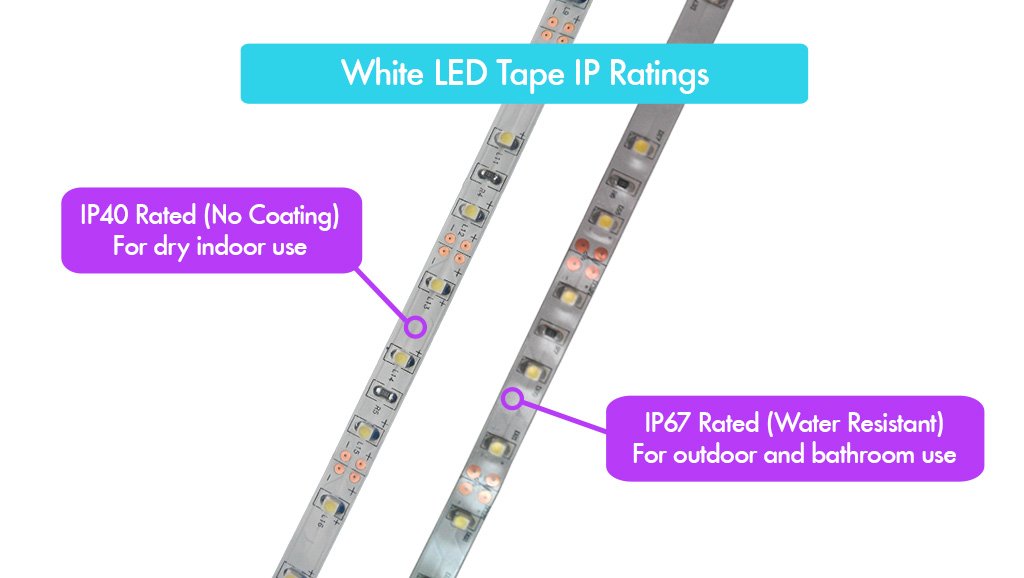 When a customer is looking to choose which IP rating they require they need to think about what application they will be using the LED’s for and where they are going. For example if you where going to install them in a bathroom where there would be steam and water we recommend the IP67 type. If it is to be fitted outside we also recommend the IP67 LED tape.