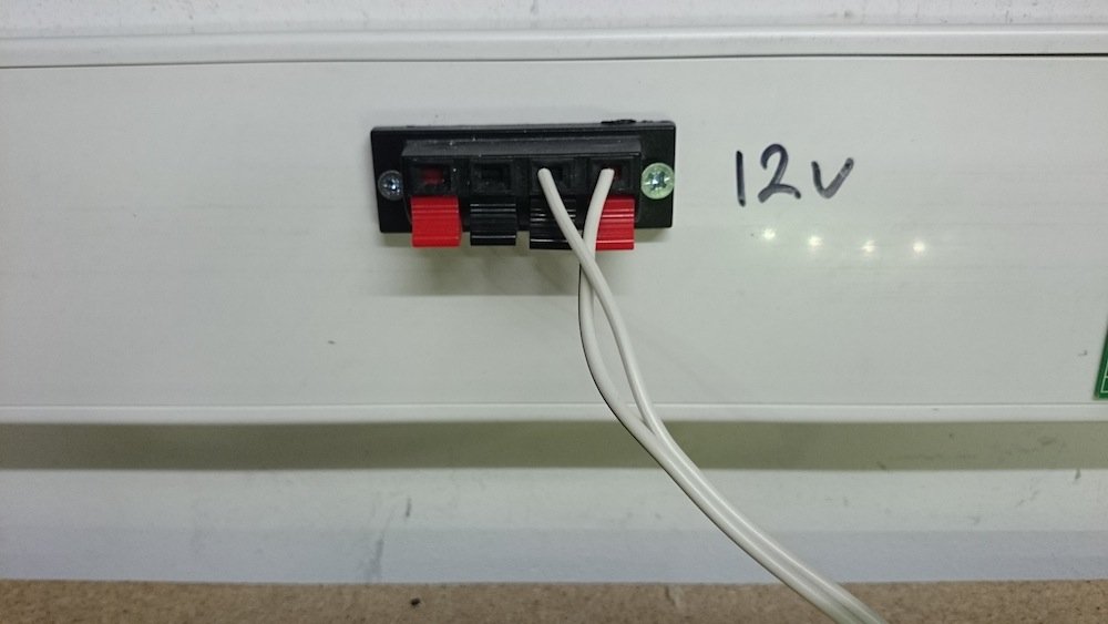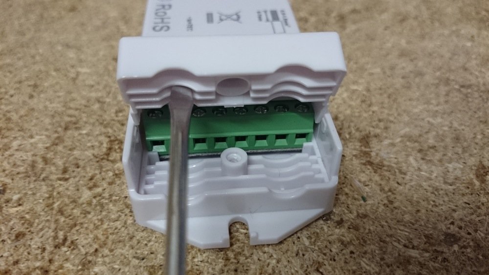 3. On the left there are 4 connections for the power input, unscrew a + and . Now take your 2 core cable and place the correct wire into each connection (Red/Brown/White stripe = +, Black/Blue/White = –)