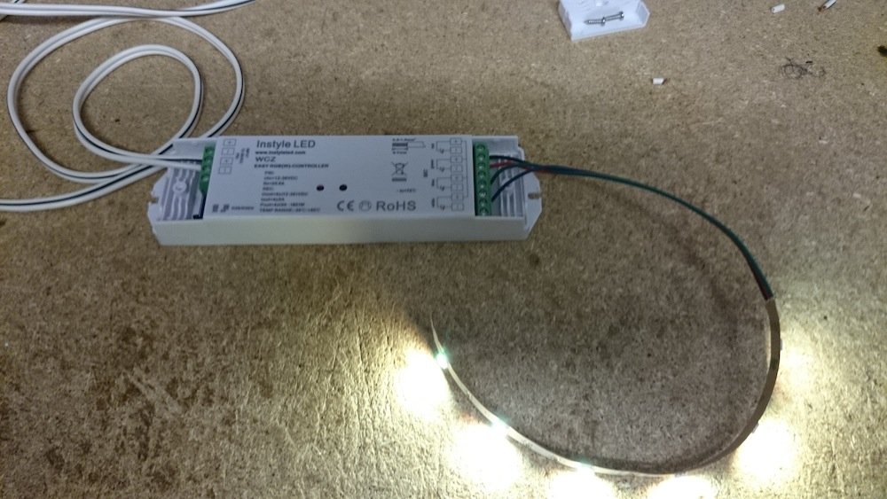 5. Place the 2 Core cable into a power source matching the voltage of the LED tape connected. The LED tape will now light up.