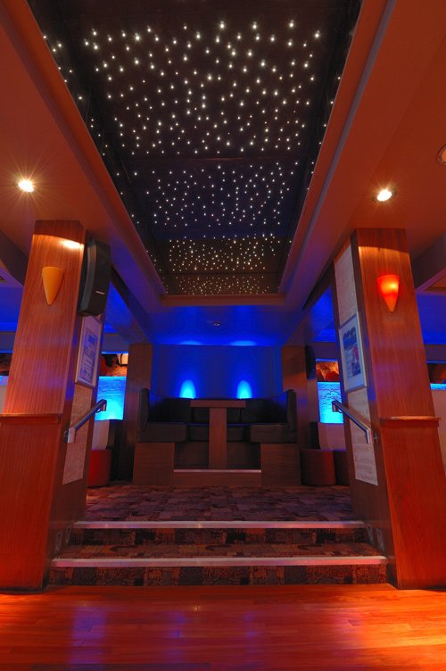The Keys Lounge Bar in Yarm uses downlights in the ceiling creating intimate areas for a relaxed atmosphere perfect for great night drinking and chatting. As the downlights are RGB colours can be selected to help set different moods.