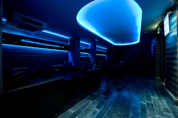 The Keys Chillout Lounge in Yarm uses LED strip lights around the bar, RGB downlights in both the ceiling and floor and behind the seating area, and LED Tape around the ceiling alcoves.