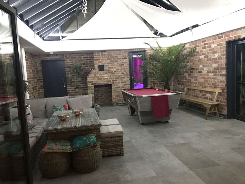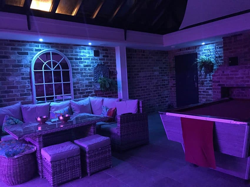 All lighting in the conservatory’s jacuzzi room comes from eight RGB LED downlights. Even though they’re more often used for accent lights and highlighting, they provide plenty of light and atmosphere for this calming space.
