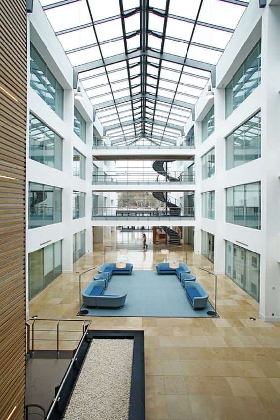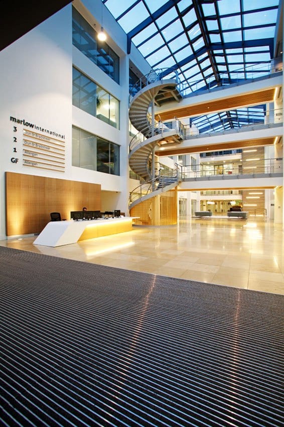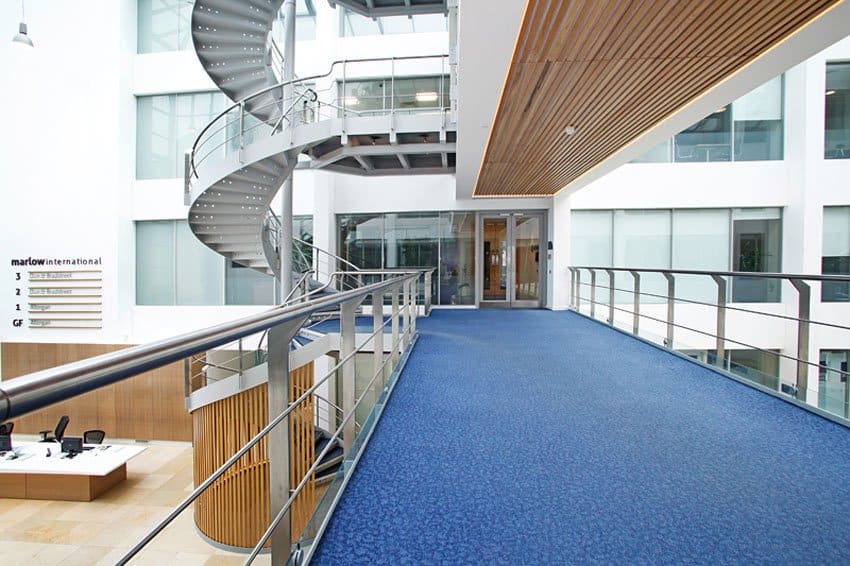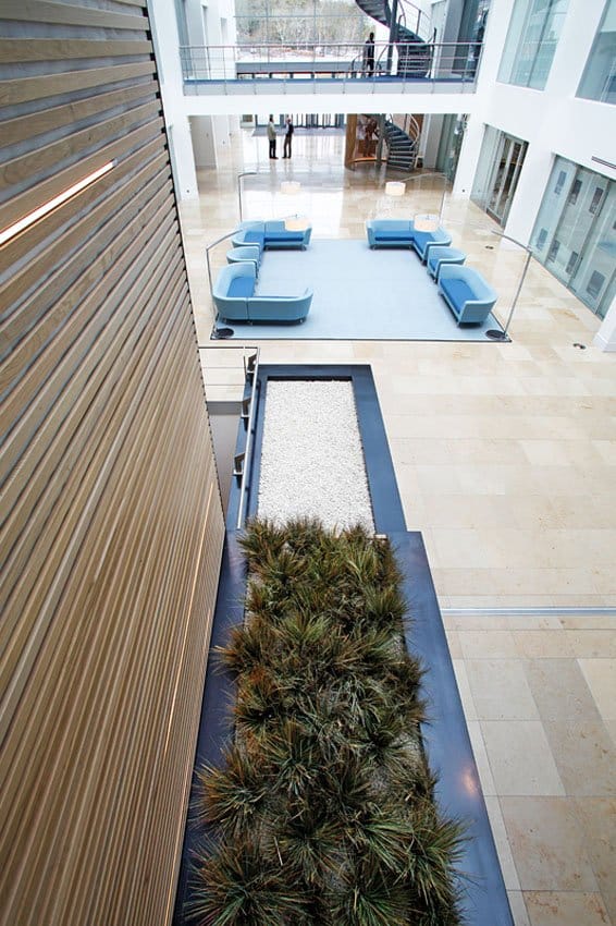Elsewhere, landscape architects ASH created a covered interior ‘street’ by linking Marlow International’s courtyards with the reception area. This strikingly unites the internal and external spaces of the refurbished building.