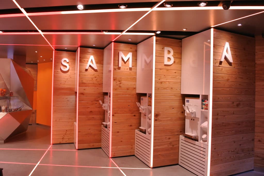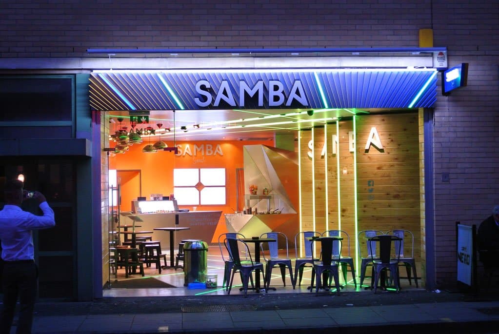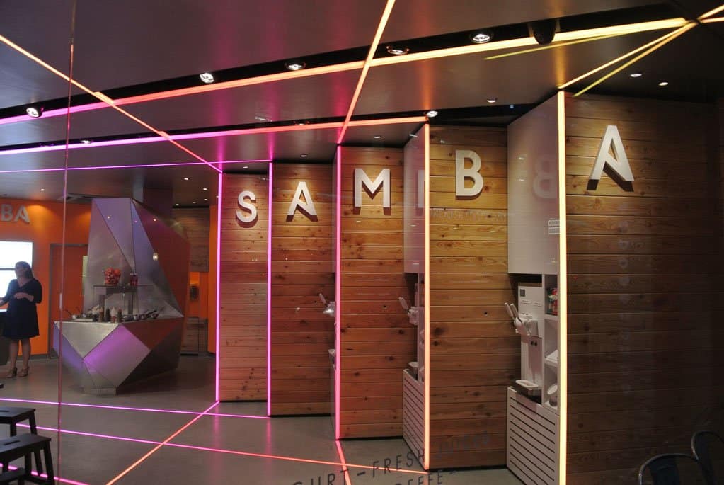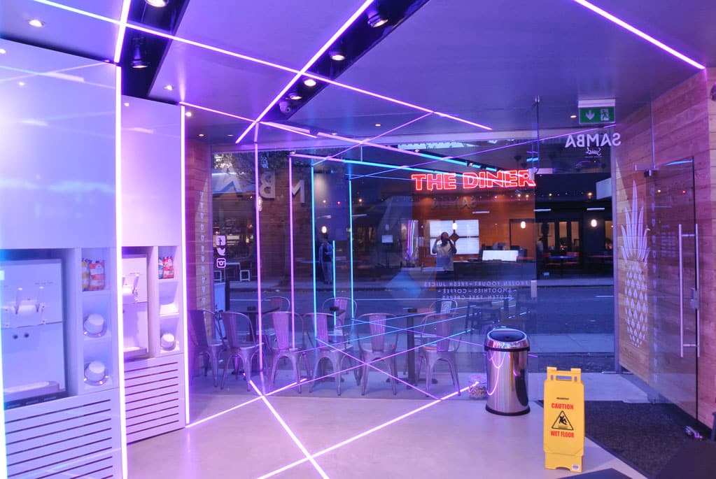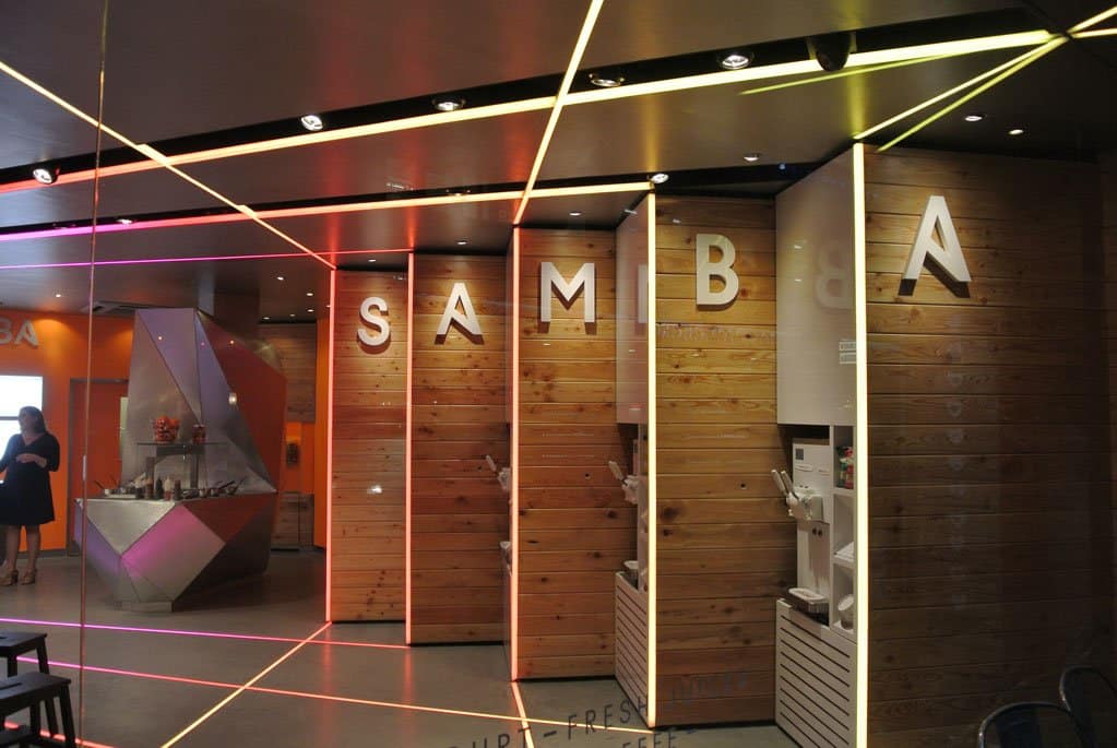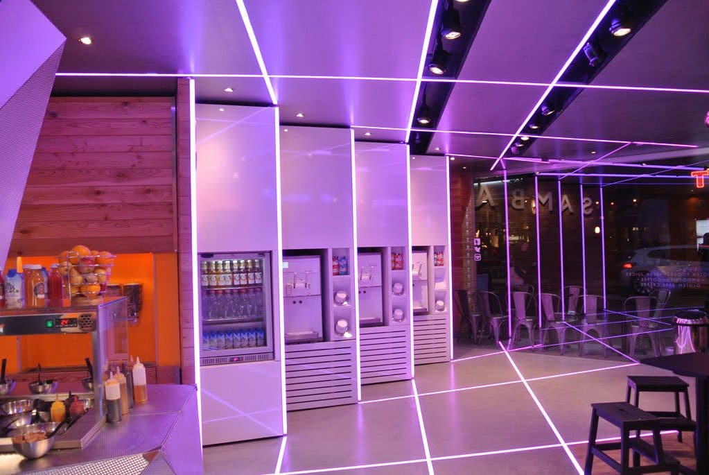 In 2013 Samba swirl underwent a lengthy re-brand to achieve a look that will take Samba Swirl into its next phase of growth. The Camden store is the new flagship store completed with a new design with special features such as colour changing LED lighting throughout, including the floors, wall and ceilings.