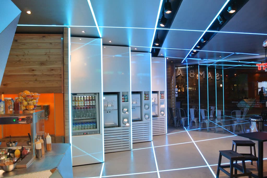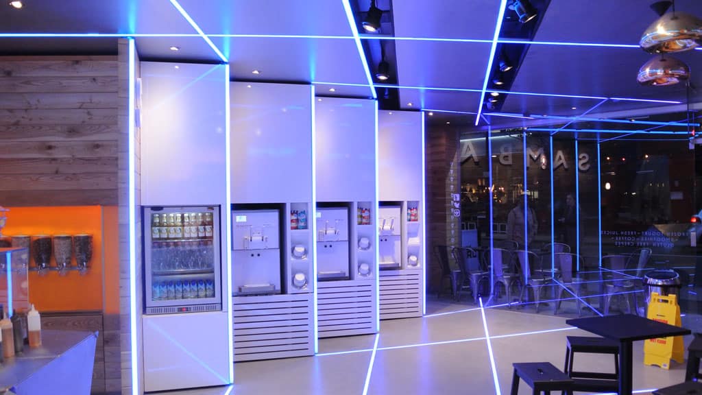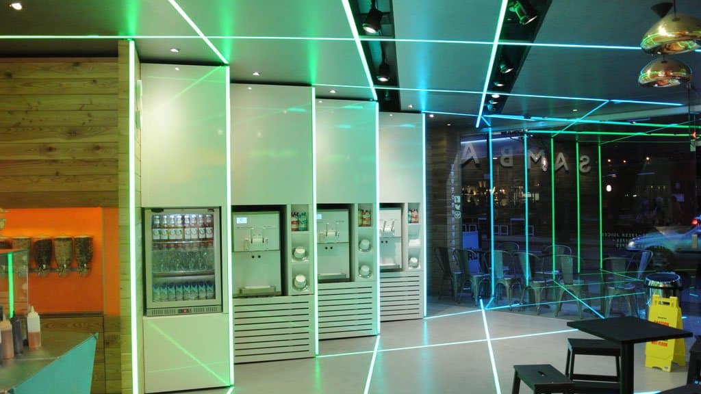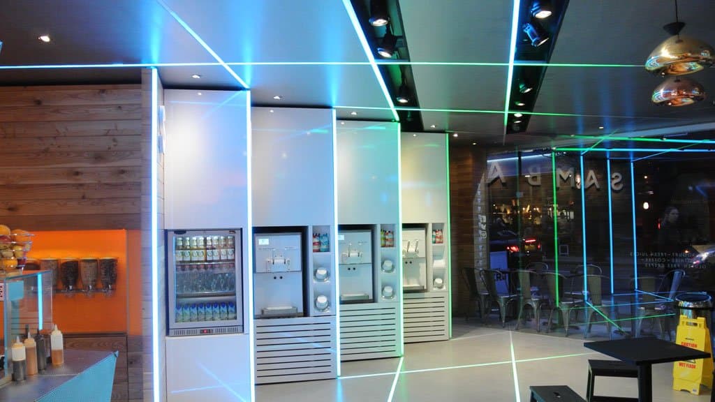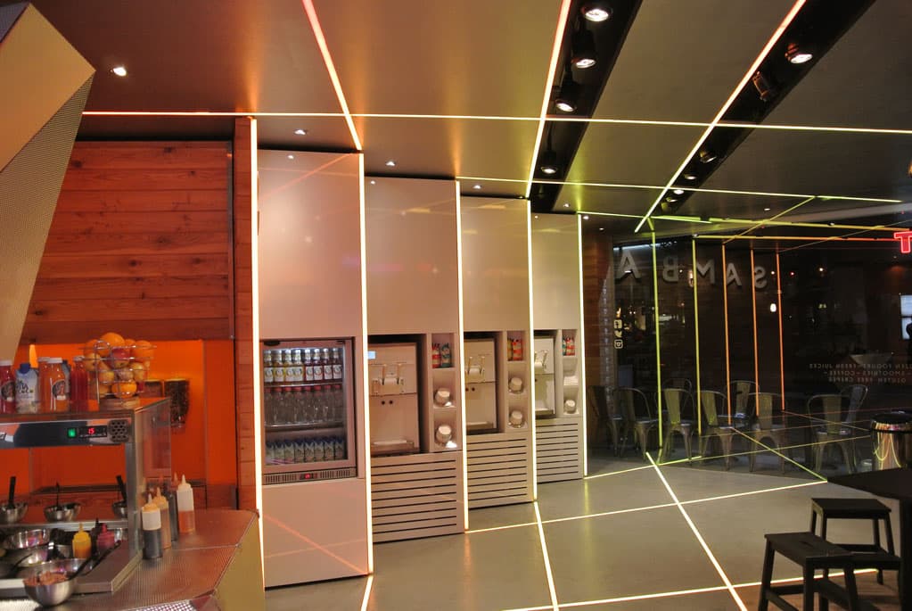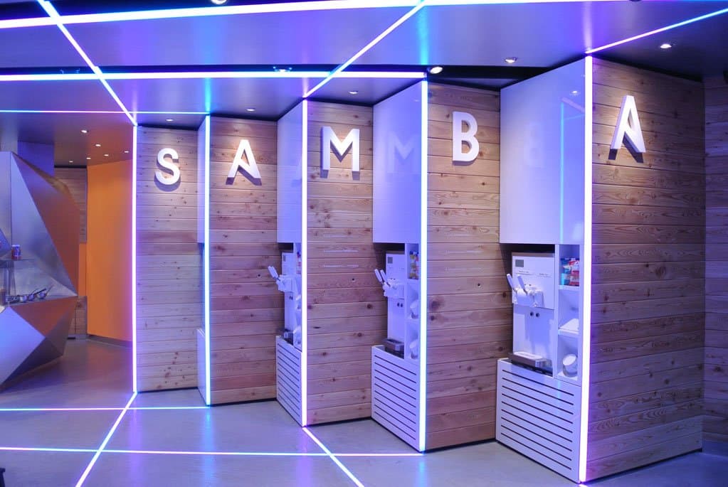 In 2013 Samba swirl underwent a lengthy re-brand to achieve a look that will take Samba Swirl into its next phase of growth. The Camden store is the new flagship store completed with a new design with special features such as colour changing LED lighting throughout, including the floors, wall and ceilings.