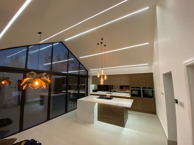Flush LED profiles produce attractive inset lighting that’s clearly superior to the results achieved by simply fitting LEDs to a wall or other surface. The images here show the results to lovely effect.