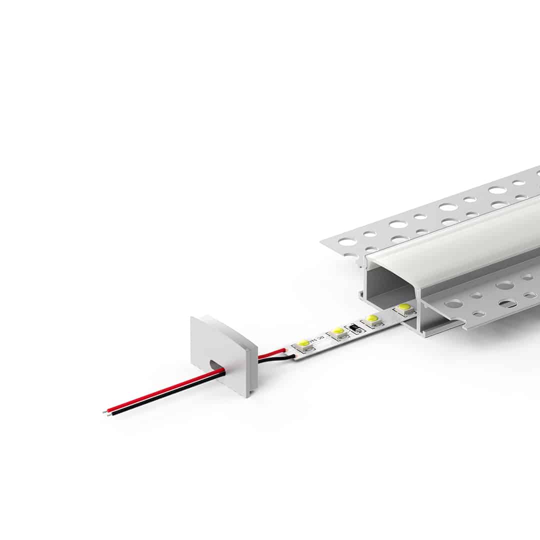 When it comes to lighting installation, a professional finish really matters. That’s why these ceiling LEDs are mounted in lengths of aluminium profiling (also called ‘LED extrusions’), specifically manufactured for the purpose. The design of these profiles allows your LEDs to sit flush with the surrounding surface – in this case, the ceiling. Once they’re fitted, the profiles’ perforated flanges can be plastered over to achieve a smooth finish.