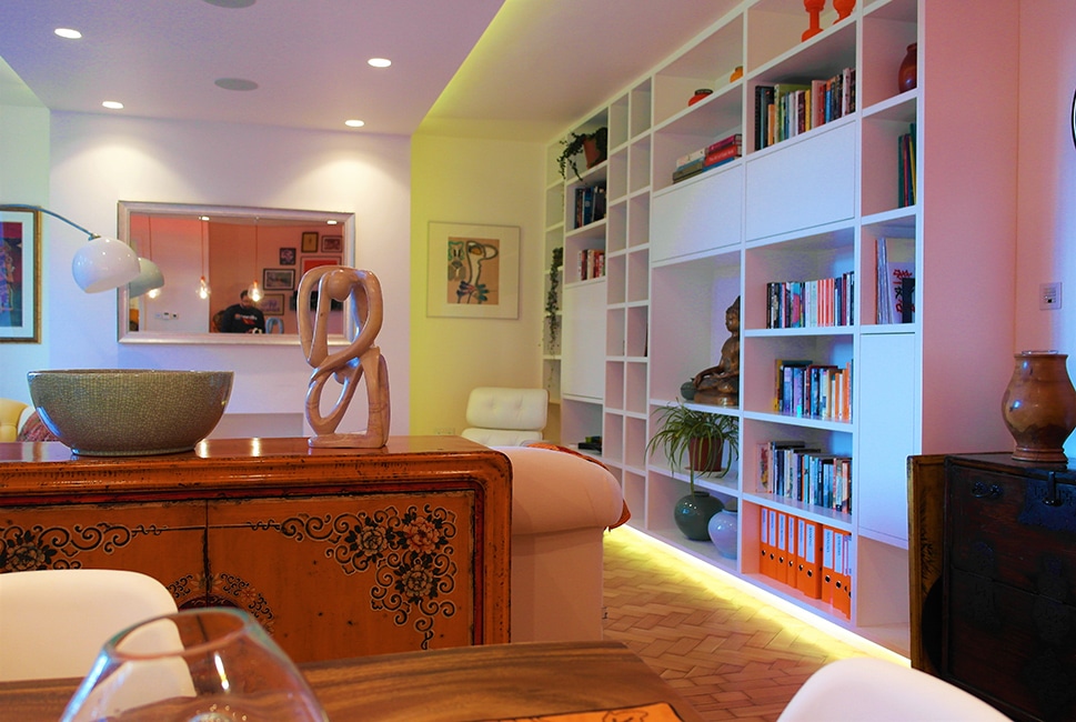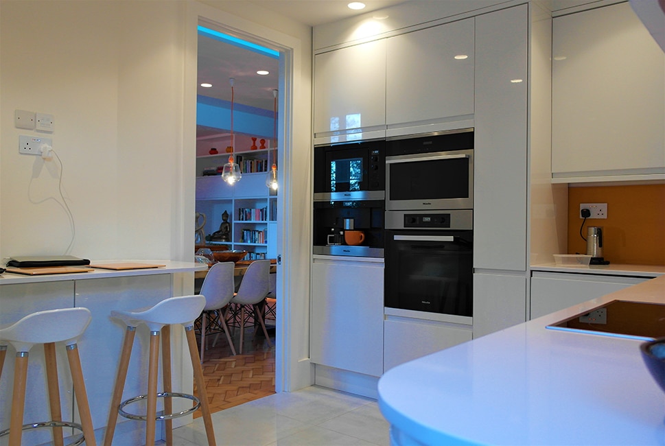 “Sam has transformed what was a tired and dated mansion flat into an ultra-modern living space which we love. The project involved a complete renovation and implementing a home automation system to run lighting, heating and digital music system in every room. His attention to detail and design aesthetics is remarkable.”