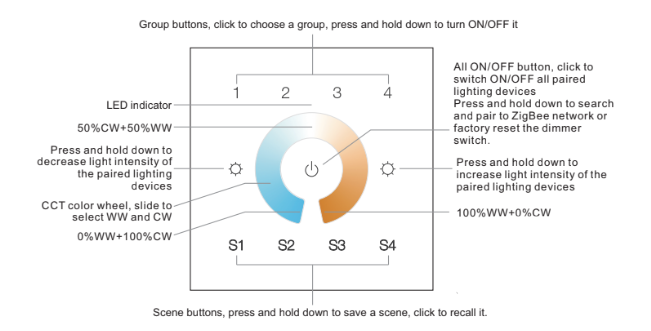 4 Zone | Zigbee | CCT | Wall Plate Controller (White)