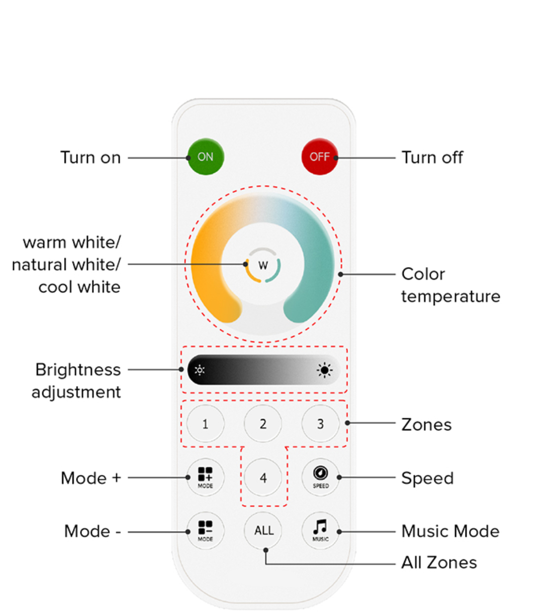 Featuring easy zone selection, music mode, and fast RF pairing/unpairing, the RB2 is ideal for both residential and commercial projects requiring flexible and modern control of tunable white lighting. Its sleek wall-mounted design ensures it blends seamlessly into contemporary interiors while offering reliable 2.4GHz wireless performance.