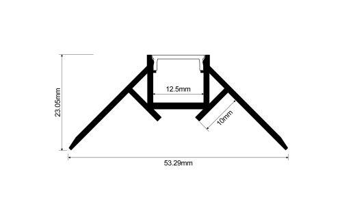 With dimensions of 53.3mm wide and 23mm high, this profile accommodates LED tape up to 12.5mm wide, making it suitable for a wide range of lighting designs. Available in 1m and 2m lengths, it comes in a sleek silver aluminium finish for a modern appearance.