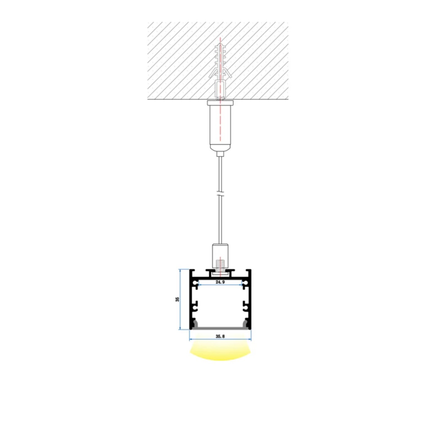 Square Suspended | 35mm x 35mm | LED Linear Light