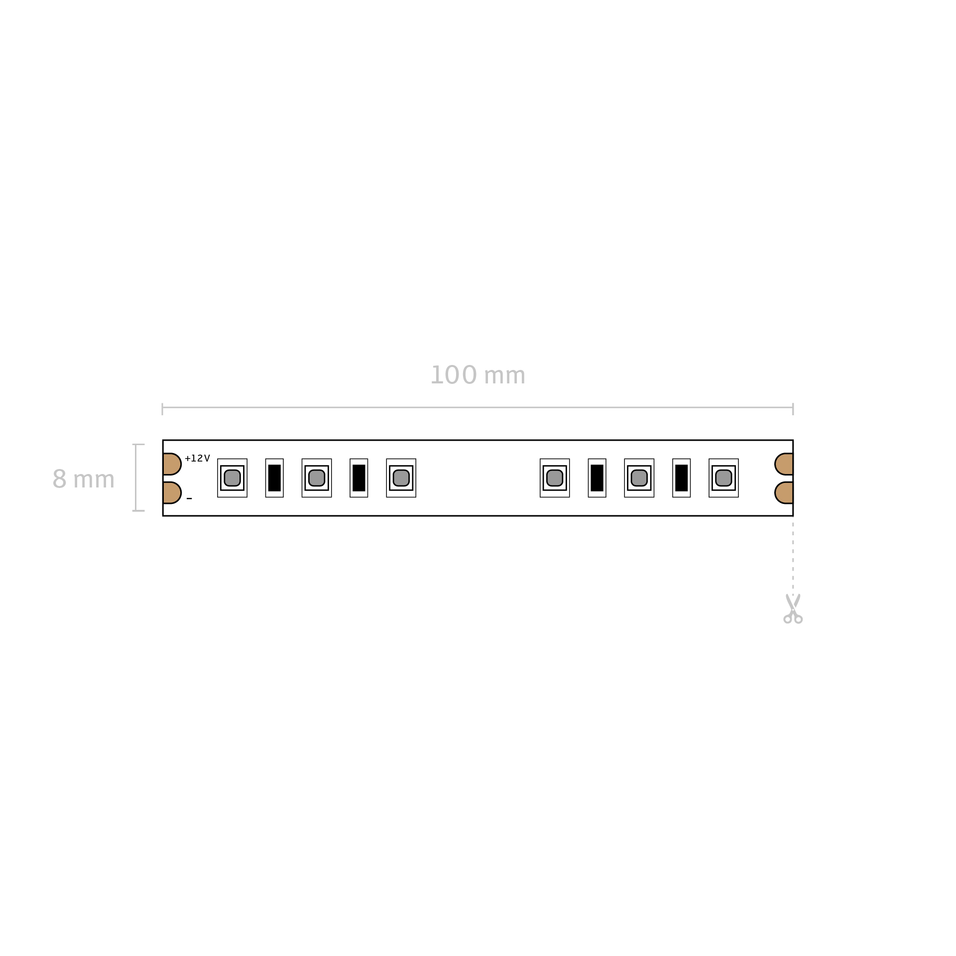 The slim 8mm width allows easy installation into aluminium profiles, signage, or concealed details. Cut points every 100mm enable accurate sizing, while the strong 3M 300LSE backing tape ensures secure mounting on a wide range of surfaces.