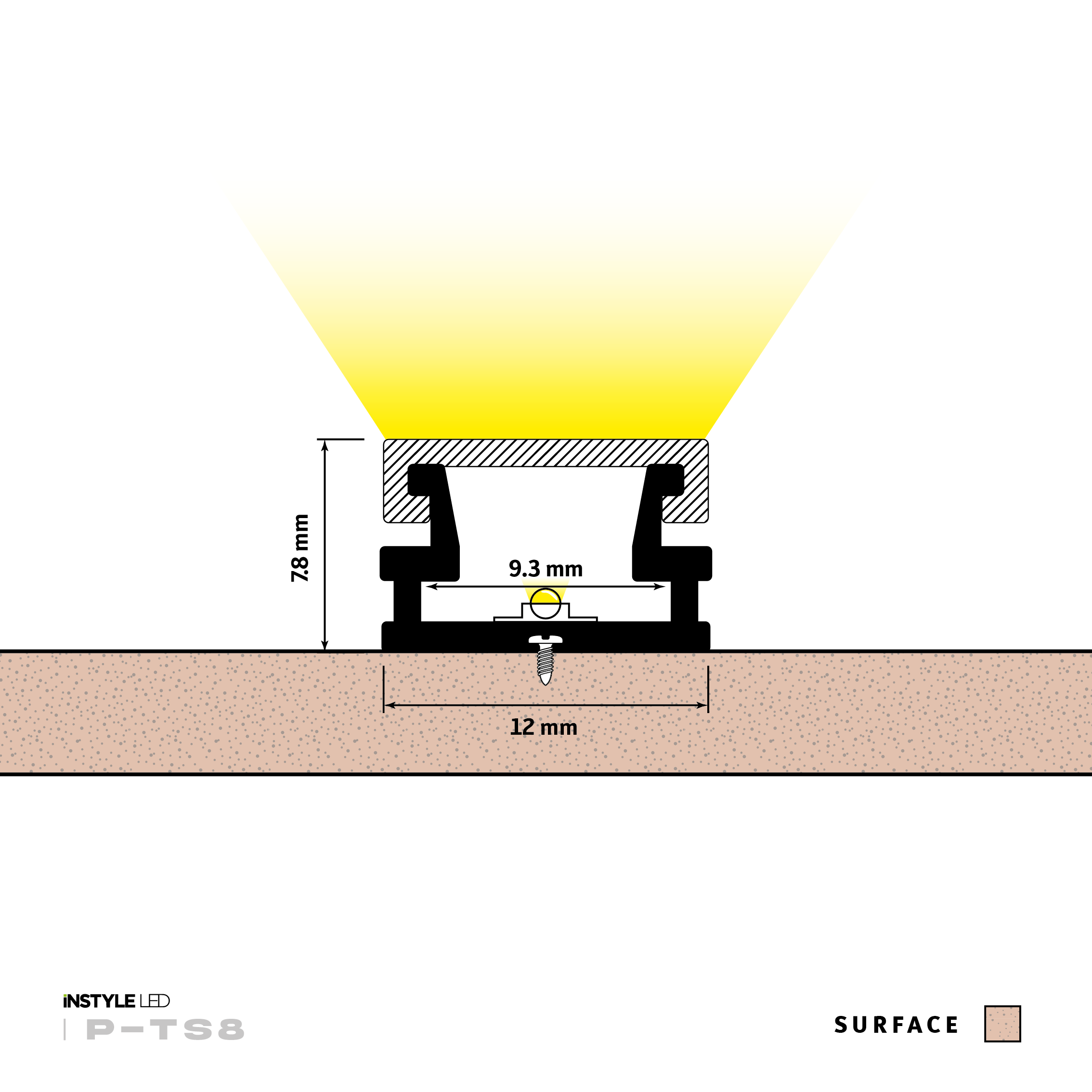 The INSTYLE LED thin surface 8mm aluminium profile is designed to deliver a sleek and professional finish for your LED installations. It features a semi-diffused opal lens, which effectively disperses the light from individual LED diodes, creating a smooth and continuous light-bar effect. Read more.