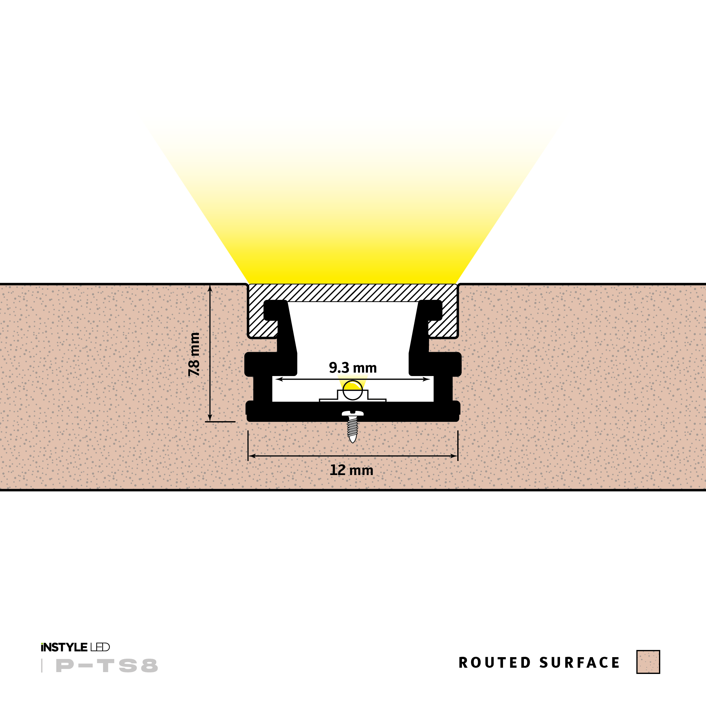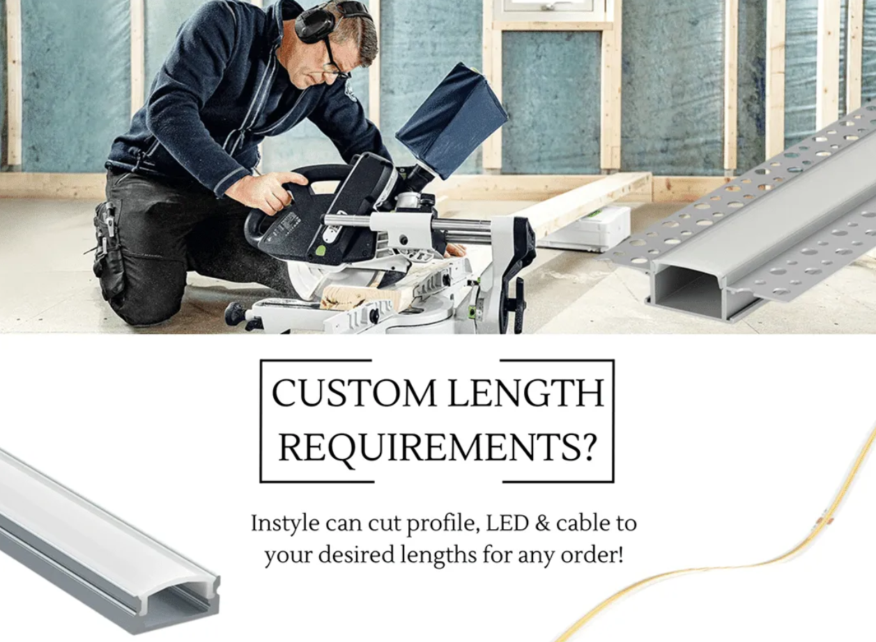 Our thin surface 8mm profile is available in standard lengths of 1m or 2m, but they can be easily customized to your specific requirements. Simply cut the profile with straight or mitred cuts by using a hacksaw for a perfect fit.
