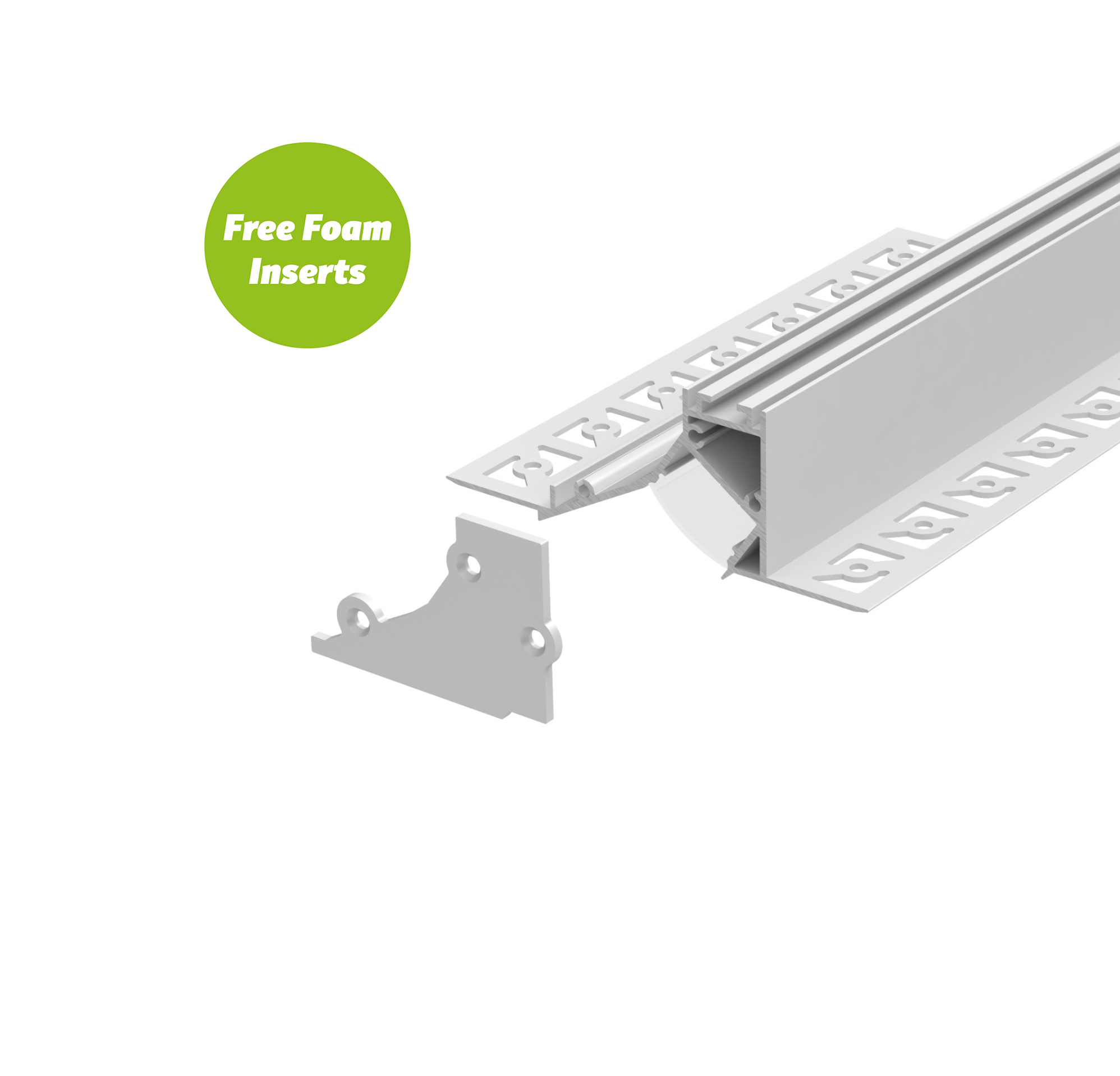 - Foam insert protects the inside of your aluminium profile when plastering to ensure this stays clean, ready to apply your LED strip lights without damages.