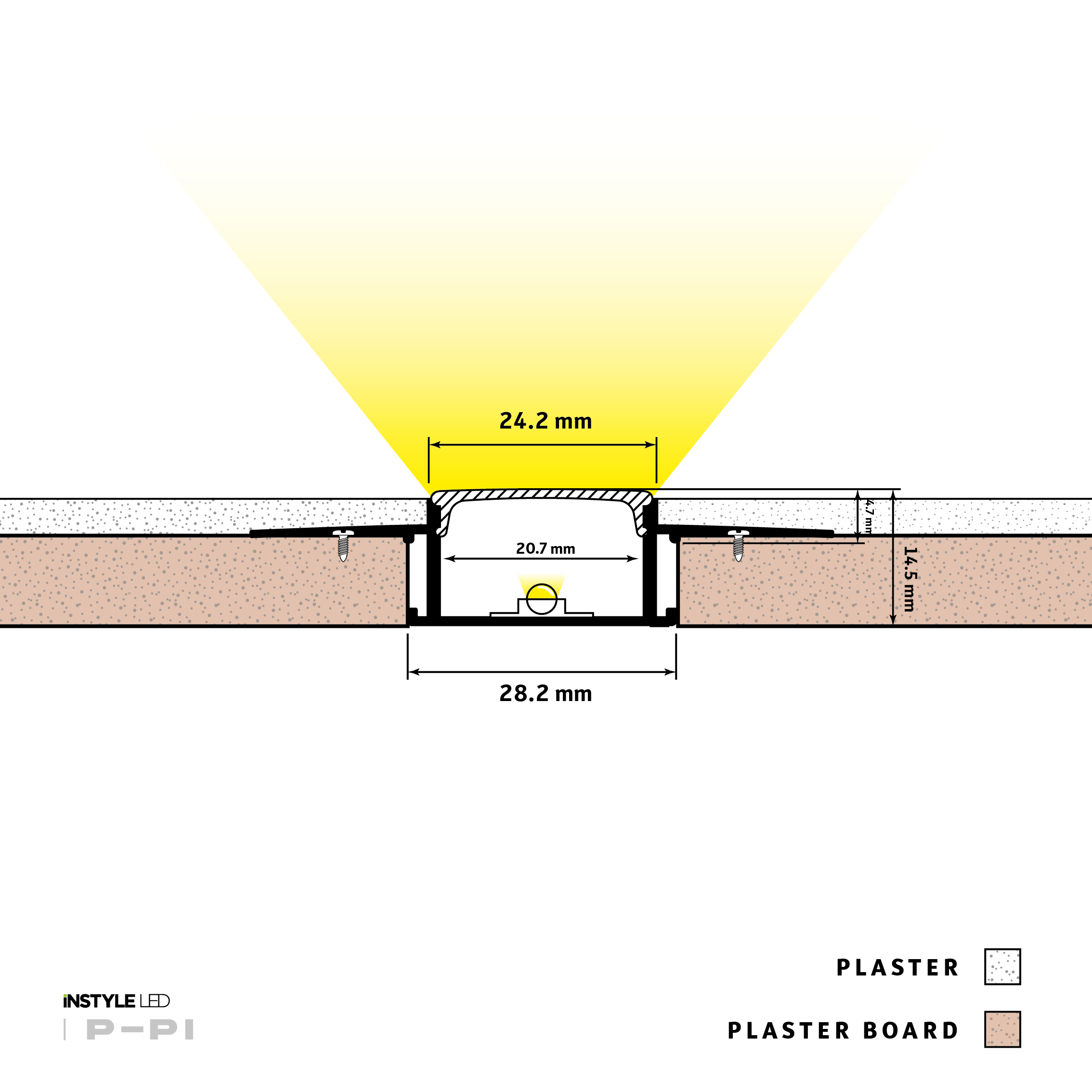 The INSTYLE LED plaster-in aluminium profile is the perfect solution for projects where you need to seamlessly integrate your lighting into a wall or ceiling. Designed with perforated flanges, this profile can be easily plastered over, allowing the aluminium housing to blend discreetly into the surrounding surface for a modern, professional finish. Read more.