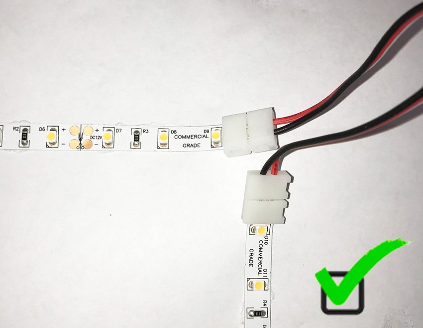 You can order your tape with flexible LED strip connectors already fitted. Tell us where you want your tape to bend, and we’ll cut and solder your flexible connector(s) before your order is dispatched – so it’s ready to use right out of the package.