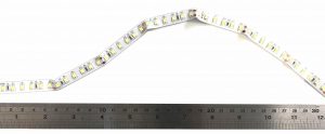The 5-watt white LED tape shown here has 60 LEDs per metre, mounted on an 8-millimetre-wide PCB.