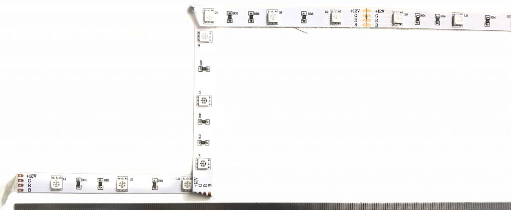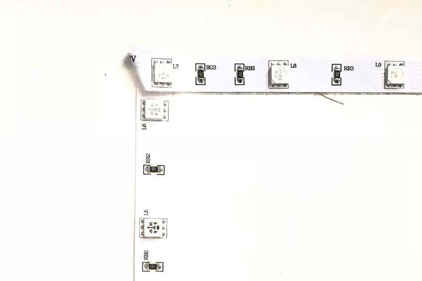 Note: When bending your LED tape across the PCB’s edge, take care not to damage the PCB mounting. We strongly recommend you apply the bend at one of the tape’s marked cut-points.