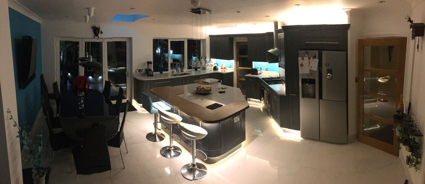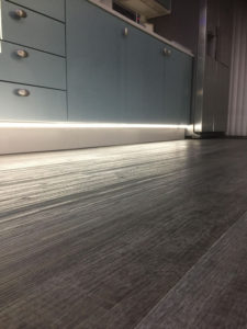 - If the hollow space behind the plinth/kickboard is open, then fit your LEDs in there – out of sight on the vertical surface. This arrangement means that any unwanted dotting will be out of sight too, with light from individual LEDs merging to create a smooth floor-wash effect in view.